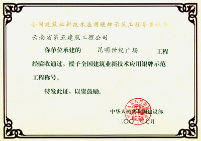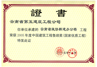 昆明市第一人民醫(yī)院外科住院大樓—2005年度“AAA級(jí)安全文明標(biāo)準(zhǔn)化誠信工地”